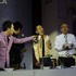 カプコンは、PS3/Xbox360ソフト『アスラズ ラース』の最新情報と新年会をあわせた2012年初のイベント「発売まであと41日!!『アスラズ ラース』怒涛のプレゼンテーション 〜2012年カプコン新年会〜」を開催しました。その様子をレポートします『アスラズ ラース』は、かつて神の座にありながらも仲間の裏切りによって全てを失った「怒」の化身「アスラ」の壮絶な復讐劇が描かれるアクションゲーム。カプコンとサイバーコネクトツーのタッグによって作られた体感型連続活劇アクションとなっています。ステージには、カプコンパブリシティ企画推進室 室長の萩原良輔氏、カプコン『アスラズ ラース』プロデューサーの土屋和弘氏、そして開発を担当するサイバーコネクトツー松山洋氏の3人が登壇。『アスラズ ラース』の最新情報と新年のあいさつを行いました。まず既にお伝えしている通り、「カプコンバー」が1月25日に東京・新宿歌舞伎町にある「パセラリゾーツ新宿本店1F」にオープンすることを報告。萩原氏は2年前からエンターテイメントバーをやりたいと思っており、今回満を持してオープンします。店頭では「一狩り行こうぜ!!こんがり肉」「ブイレイン(脳みそ)ケーキ」「前田慶次のタコの恋華カルパッチョ」「白黒はっきりさせよう魚介のクリームパスタ」など、コラボメニューも多数用意するとのことです。新年会と言うことで、スペシャルゲストとしてお笑いコンビのHi-Hi(上田浩二郎さん、岩崎一則さん)が登場。吸盤付き日の丸旗を頭に向かって投げて乗せたり、北斗の拳や万引きGメンなど、持前のネタを披露して来場者を楽しませてくれました。続いて『アスラズ ラース』プレゼンテーションは、カプコン土屋プロデューサーとCC2松山社長を中心に、萩原氏とHi-Hiの2人を含む5人で進行。現在配信中の体験版(5話と11話が遊べる)を実際にプレイしながら改めて『アスラズ ラース』について紹介していきます。『アスラズ ラース』は、「破天荒」「予想を裏切る怒涛の展開」「日本人のDNAを直撃する熱き怒羅漫(ドラマ)」3つのキーワードを掲げ作られました。例えるならば、少年漫画やドラマなどのノリをプレイヤー自信がアスラになりきって体感できるゲーム。ゲームはAパート→アイキャッチ→Bパートで進行。毎回いい所・続きが気になる所で終わるようになっています。また、スケールの大きさも見所。5話はアスラが最初のボスと戦うお話となっており、裏切られた最初の敵と戦います。イベントシーンでは「黙らせる」ことができ、イベントシーンをスキップすることが出来ます。またイベントシーン中はカメラ操作も可能で、上下左右、動かすことが出来ます。アスラの攻撃方法はシーンに応じて変化。状況に応じてはシューティングゲームのような場面も登場し、その時に応じでアスラの攻撃方法も変わります。そして敵に攻撃を与えたりすることで「バーストゲージ」が増えていき、これがMAXになると究極の攻撃「バースト攻撃」を繰り出すことが出来ます。『アスラズ ラース』ではバースト攻撃すれば先に進めるようになっていて「全ての敵を倒す必要はない」ゲームになっています。「見た目は派手だけど、操作はシンプルなので誰でも遊べる」と松山社長。次は初公開となる15話をプレイ。ストーリーも怒涛の展開で進んでおり、ここでアスラとライバル関係のヤシャが登場します。とある理由で暴走しているアスラを食い止める為、ここではヤシャを操作してアスラと戦います。また、ヤシャは仲間になるもう一人の主人公でもあり、ヤシャの物語を描いたストーリーも用意されているそうです。気になる内容は製品版までのお楽しみと言うことで、ここでは戦いを中心に紹介されました。土屋プロデューサー曰く、「パワーのアスラに対して、スピードのヤシャ」と、キャラクターの差別化もされているようです。『アスラズ ラース』では難易度選択があり、松山社長はノーマルじゃクリアできないそうですが、イージーならクリア出来たとコメント。これは誰でもお話を最後まで楽しめるように作られている為と土屋プロデューサーは説明します。松山社長は「怒涛の展開が続くのが『アスラズ ラース』の特色。ぜひ楽しんでほしい」と、ゲームプレイプレゼンを締めくくりました。そして『アスラズ ラース』とパセラのコラボメニューを用意。アスラの怒りをイメージした激辛カレーを考えており、ネーミングの決定はこれから。色々話し合った結果、「in怒カレー」「怒ライカレー」「怒怒怒カレー」などが挙がり、この場では「怒怒怒カレー」で決定しましたが最終版はどうなるか決まらず。こちらは後日改めて公開される予定です。会場では来場者も試食出来ましたが、とにかく辛いの一言。水が必須です。でも2口目、3口目からは慣れて旨辛いカレーに感じました。後半はサイバーコネクトツーの下田星児ディレクターもステージに登場。来場者の中から10人募い、第9話のクリ