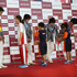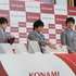株式会社コナミスポーツ&ライフは、六本木ミッドタウンにあるKONAMI本社前にて、KONAMI競技部所属の内村航平選手、山室光史選手、田中佑典選手、藤井拓郎選手の4名によるロンドンオリンピック日本代表選手報告会を行いました。内村航平選手は体操男子個人総合・金メダル、同個人種目別床運動・銀メダル、同団体・銀メダルと合計3つのメダルを獲得。山室光史、田中佑典は体操男子団体・銀メダル。藤井拓郎選手は競泳男子4×100mメドレーリレー・銀メダルを獲得。会場にはトップアスリートをこの目に見ようと多くのお客さんがかけつけました。中には内村選手の名前を刻んだお手製うちわを持つ女性もいて、さながらアイドルのトーク会のようでした。会場は東京ミッドタウンのキャノピー・スクエア。KONAMI本社からはレッドカーペットでつながり、藤井選手、田中選手、山室選手、そして内村選手の順に、レッドカーペットを進んでいきました。選手はそれぞれ獲得したメダルを首から下げ、沿道の人々に爽やかな笑顔を振舞っていました。メインとなるオリンピックの報告会ではそれぞれ1言ずつ挨拶を述べました。藤井選手は「4年前の北京オリンピックでも銅メダルを獲得できたのですが、今回は種目がバタフライから自由形になってとてもプレッシャーがかかりましたが、4年間やってきたことを全て出し切れました」と語り、藤井選手が北島康介選手にリレーのアドバイスをしたというエピソードも披露しました。田中選手は「初オリンピックは想像していたよりも辛かったですが独特の雰囲気、緊張感を楽しみながら試合できました。兄(田中和仁選手)と姉(田中理恵選手)と共に実家に報告したいと」語りました。山室選手は「途中で怪我をしてしまい多くの方にご迷惑をおかけし情けない試合だったと思いますが、オリンピックに出られたことは大きなプラスですし、また4年後にこのかりを返したいと思っております」と語りました。左足の怪我は2週間前に手術をしたとのこと。これからリハビリをして新しいスタートを切りたいと胸の内を熱く語りました。そして内村選手は「思い返すとチーム力の高い団体戦ができたのでまたこのチームでリベンジできたらいいなと思います」と語りました。日本人選手で3つメダルを獲得したのは内村選手だけでしたが、そのことについて「すごく嬉しいです。帰国してからメダルを3つ首から下げる機会があったのですが、3つで1.25kgもあるので首に負担がかかりました(笑)でも皆様の応援があってこそのメダルだと思っているので、非常に感謝しています」と語りました。次に選手の前には展示台が登場し、それぞれ首 にかけたメダルを自身の手で展示台に納めました。四選手のメダルが置かれた展示台は東京ミッドタウン内で8月24日(金)〜26日(日)の期間限定で展示されます。メダルを間近で見るまたとないチャンス、足を運んでみてはいかがでしょうか?またコナミスポーツクラブのキッズから手作り金メダルの贈呈もあり、本物の金メダルより大きな金メダルをもらった藤井選手は「(身長の高い)自分のサイズに合った大きなメダルをもらえて嬉しいです」と笑顔で応えました。最後に、ぞれぞれ次のオリンピックへの抱負を語り閉幕となりました。4年後のリオデジャネイロオリンピック、ロンドン以上のすばらしい成績に期待が高まりますね。