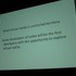 GDC2013で一躍注目を集めたのが、PC向けヘッドマウントディスプレイ(HMD)の商品開発を行うベンチャー企業、Oculusです。エキスポブースに設置されたデモ機「Oculus VR」には行列が絶えず、最大2時間待ちという人気ぶり。ヘッドトラッキングと連動し、頭を動かして周囲を直接確認できます。ディスプレイはS3Dによる立体視となっており、視野角と臨場感は抜群。従来のHMDが映画の視聴など汎用性を高めた結果、虻蜂取らずになっていたのに対して、本製品はゲームそれもFPSなどに特化した作りになっているのが特徴です。解像度は片眼が640×800ピクセル(両目で1280×800ピクセル)で、二つの画像を重ね合わせて立体感を表現しており、スペックだけ見ると物足りなさを感じるかもしれませんが、体験者の感想は非常に良好。早くも「これでFPSやフライトシムなどをガンガン遊びたい」という声が聞かれました。特に体験者の周囲を包み込むような、広い視界が印象的なようです。すでに開発機は7500台が用意されており、3月中に発送される予定。一般販売は2014年がみこまれています。Oculus VRを一躍有名にしたのが、キックスターターでの投資です。E3 2012で発表され、8月1日にキックスターターに掲載されると、25万ドルの目標額をわずか数時間で達成。最終的に約9倍の240万ドルの調達に成功しました。Valveやid-softwareといったFPSでおなじみの企業からも支援を取り付けました。公式サイトには『Doom』のジョン・カーマック氏ら、業界の大物のポジティブなコメントが並びます。GDCでは二つのスポンサードセッションを実施しましたが、どちらも満員御礼で、入りきれない人がドアの前に行列を作るほど。その人気ぶりを見せつけました。ここでは創始者のパーマー・ラッキー氏自らがバーチャルリアリティ(VR)に対するビジョンを語った「Virtual Reality:The Holy Grail of Gaming」の内容についてレポートしましょう。ラッキー氏は「ゲームは体験の共有である」と切り出し、(疑似)体験を共有できるメディアの歴史について振り返るところから始めました。最も古典的で現在も廃れることのないメディアには書籍があります。映画もそうでしょう。一番最後に登場したのが(これまでの)ゲームです。しかし書籍(のキャラクター)は読者に触れることはできません。映画は視聴者に反応しません。過去のゲームもまた、プレイヤーを本当に没入できる世界へと誘ってはくれません。そこで登場した福音がVRというわけです。「スカイダイビングのような体験を、どうやったら私たちは共有できるでしょう?」とラッキー氏は問いかけます。ゲームデザイナーもまた、本当に没入でき、センセーションで、遊び手の感情を呼び覚ますようなツールを求めていると語ります。そのためには新しい種と仕掛け、すなわち技術が必要で、それがVRである。VR用にデザインされたゲームはメディアとしてのゲームの価値を一変させ、今までできなかった様々なことが可能になる。新しい時代の扉を開く。ラッキー氏の主張はシンプルで明確です。もっとも、こうした言説は今に始まったものではありません。1990年代のいわゆる「マルチメディアブーム」にも、HMDとセンサーグローブを装着したイメージがマスメディアで多く見られました。しかし技術的な課題は多く残されており、HMD自体が一過性のブームとして消費されつくしてしまった感があります。こうした状況に対してラッキー氏も「VRは前人未踏の世界で、まだ最初の一歩を踏み出したに過ぎない。ゲーム開発者はその可能性を切り開く探索者だ」と呼びかけました。というわけで1時間のセッションは約30分で早々に終了(通常スポンサードセッションは「お金」で「セッション枠」を購入するため、非常に異例だと言えます)。デモなどを行うわけでも、派手なプレゼンがあるわけでもありませんでしたが、途中で退席する人は皆無に近く、最後まで質疑応答が盛り上がりました。キックスターターでの投資や会場でのデモが大きな宣伝効果を上げていたのだと思われますが、それにしても会場のポジティブな雰囲気には少々驚かされました。コンソールのアーキテクチャがPCベースとなり、コンテンツの大作化が進む中で、業界は少々息切れ気味。一方でOUYAやプロジェクトシールドといったオープンプラットフォームが登場し、ゲームハードのコモディティ化が進行しています。こうした中でコアユーザーにハイエンドなゲーム体験を提供するという、ビジョナリーとしてのPCゲームの位置づけが、大きくゆらいでいるのも事実。Oculusはそうした混迷のPCゲーム業界に久々に提示された「福音」でありなのかもしれません。