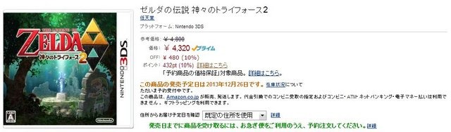 Amazon.co.jpでは、対象商品を購入するとAmazonポイントが付与され、ポイント=1円分として買い物に使用することができます。2007年に開始したこのサービスですが、日に日に対象商品を増して行き、ついにゲームにまで広がってきました。なおポイントの付与率は、ポイントがつかない『ポケットモンスター X・Y』から 432pt(10%)の『ゼルダの伝説 神々のトライフォース2』、 49pt(1%)の『GOD EATER 2』(PS Vita版)、213pt(3%)の『機動戦士ガンダム EXTREME VS. FULL BOOST』などタイトルによって様々です。またソフト以外にも、1,299pt(5%) の「PlayStation 3 スターターパック グランツーリスモ6同梱版」や、100pt(4%)の「フィットメーター(ミドリ)」といった本体・周辺機器も対象商品のようです。店頭よりも安い価格で販売されることが多いAmazonなだけに、Amazon価格+ポイント付与は非常に魅力的ですね。ただし一部タイトルは、販売価格がポイント付与額をやや下回る分だけ値上がりしているようです。■10月29日の価格『ゼルダの伝説 神々のトライフォース2』:3927円『GOD EATER 2』(PS Vita版):4835円■10月30日の価格『ゼルダの伝説 神々のトライフォース2』:4320円『GOD EATER 2』:4880円■差額『ゼルダの伝説 神々のトライフォース2』:+393円『GOD EATER 2』:+45円(編集部による記録)従来は参考価格があり、値引きの「OFF」表記があったAmazon.co.jp。そこに「ポイント」表記が新たに加わり、今後どのようにゲームの価格が変動していくのか注目です。