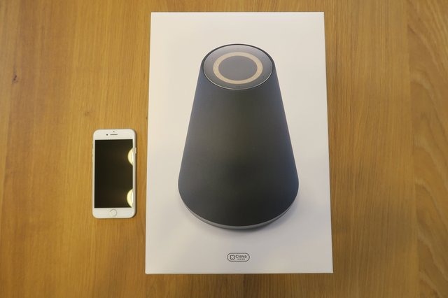 「WAVE」は円柱型のデザインで、底が広くなっています。周囲はスピーカーとなっていて360度をカバー。声を拾うマイクは上部にあるようです。部屋のどこからでも反応するように、マイクは4つ備えられています。ある程度離れている場所からも呼びかけると反応します。iPhone7と比較すると分かりますが、なかなかのサイズですが、すっきりしたオシャレなデザインなので、家に置いても違和感はないでしょう。