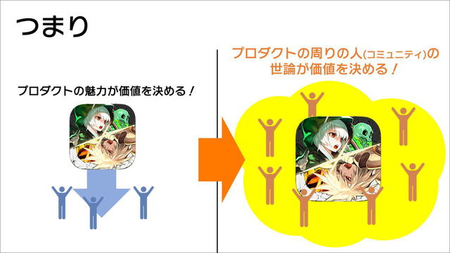 ゲームにかぎらず、外出時にふと煮干しラーメンか炙り味噌ラーメンが食べたくなったときなども、グルメサイトのレビューや点数を参照し、それがどちらのラーメンを選ぶかの判断基準になることは往々にしてあるとしながら「プロダクトの価値を決めるのはプロダクトの魅力そのものではなく、そのプロダクトのコミュニティの世論である」と断じました。