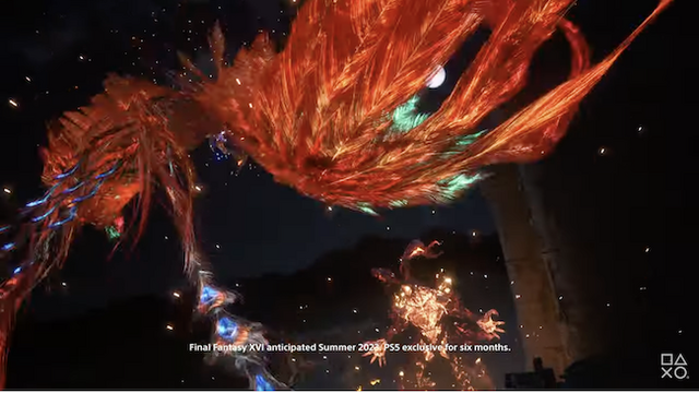 この映像は、PS5の特徴とともに対応するタイトルが紹介されたもの。その中の『ファイナルファンタジー16』紹介映像に、「Final Fantasy XVI anticipated Summer 2023 PS5 exclusived for six month.」の文字が。