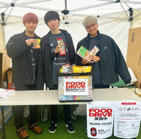 第1回フードドライブは、川崎市幸区が主催する「さいわいeスポーツフェスタ」内で開催いたしました。当日は、雨天にも関わらず、沢山のSCARZファンの方にご協力していただき、約12キロもの食品を回収することができました。