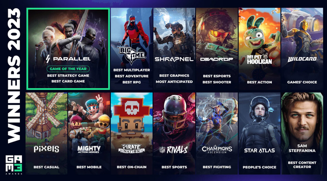 本稿では、CoinGekko(仮想通貨取引高情報サイト)が発表した今年11月のレポート「GameFiは死んだのか?75%以上が失敗(リンク先英語: Is GameFi Dead? 3 in 4 Projects Have Failed)」から一部抜粋しつつ、BCGの課題とGAM3 Awardsの受賞タイトルを紹介していきます。