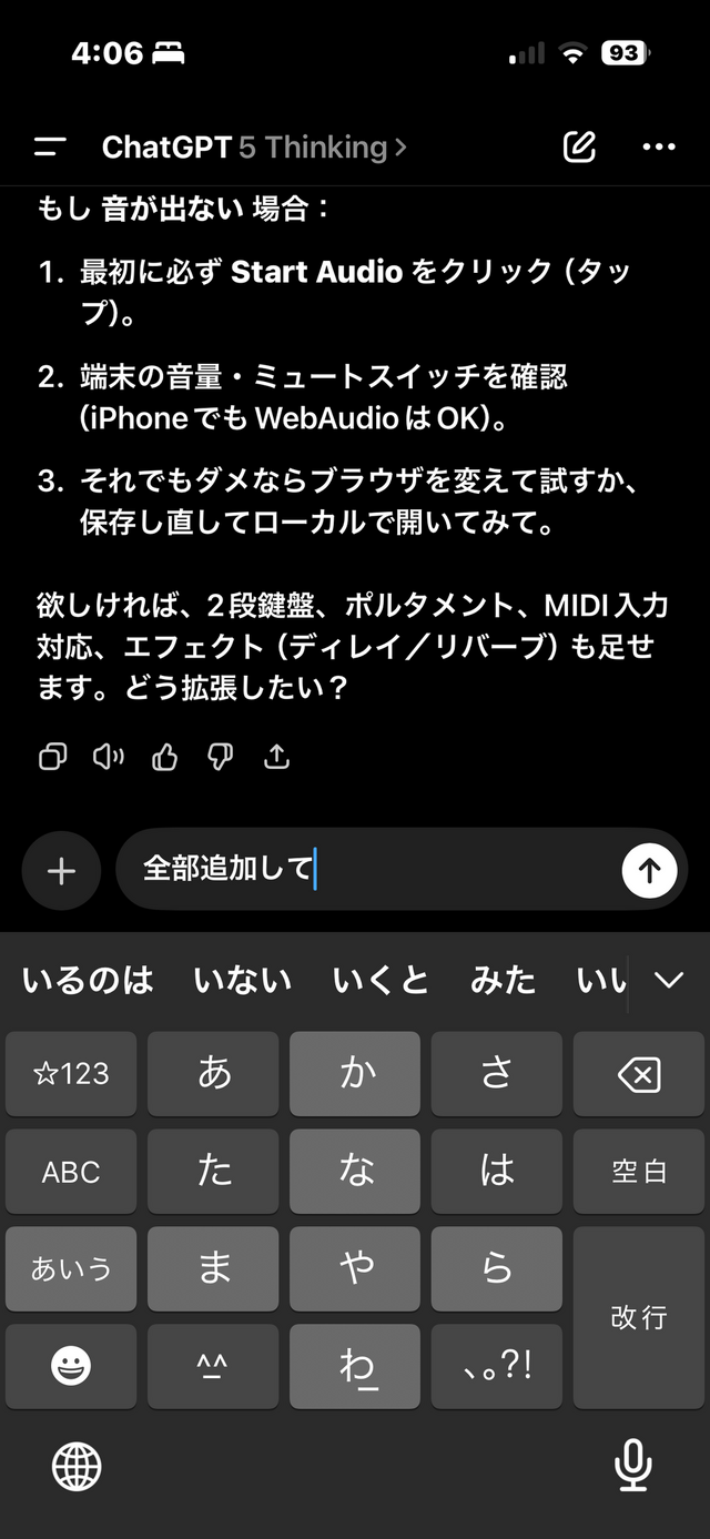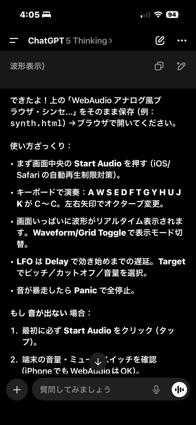 まず、ChatGPT 5 Thinking。iPhoneアプリで操作しました。