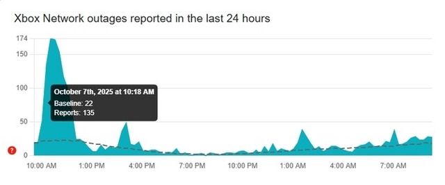ネットサービスやアプリケーションなどの障害状況をリアルタイムで把握し可視化する「Downdetector」でも、PlayStation Network、Xbox ネットワーク、Riot Games、Epic Gamesなど大手のゲームサービスで、ほぼ同時刻に障害報告が集中しているのが確認できます。
