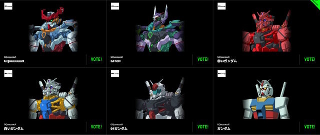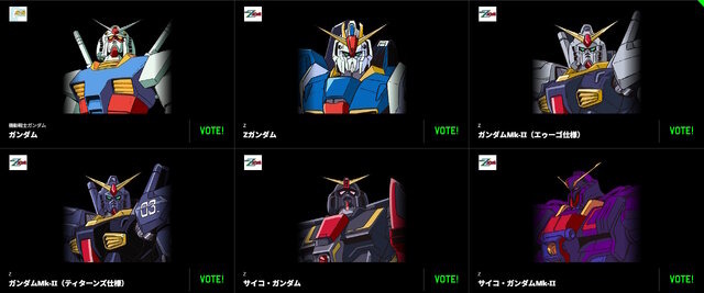候補機体として、同サイトに収録されているガンダムシリーズのアニメーション作品に登場した機体のうち、宇宙世紀シリーズとオルタナティブシリーズの中から、各作品におけるガンダムタイプおよびガンダムの名を冠する機体を選出。第1位に輝いたガンダムは新規描き下ろしイラストの制作を予定しています。