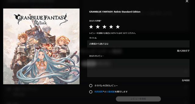 詳細なレビューを書き込めるようになったことで、これまでの5段階評価よりもさらに作品についての評価や感想に触れやすくなりました。タイトルを購入する際の参考になるだけでなく、コンソール版がリリースされた後にPC版が発売されるタイトルなどでも有効活用できることでしょう。