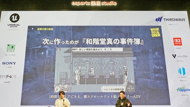 その後、このままではだめだと思い再起を決意。2019年にリリースしたのが『和階堂真の事件簿』でした。今回は完成させることを目標にしていたので、ゲームのボリュームも1時間ほどでクリアできる範囲に限定することに。盛り込みたい要素もありましたが、完成までの工数を考慮して、あえて切り捨てた部分もあったと振り返ります。