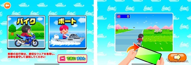 新ゲームはヤマハ発動機の主要製品であるバイク(陸)とボート(海)の操縦をテーマにした直感的なランゲーム。プレイヤーはバイクかボートを選び冒険に出発する。スマホやタブレットのジャイロ機能を利用し左右に端末を傾けて乗り物を操作する。