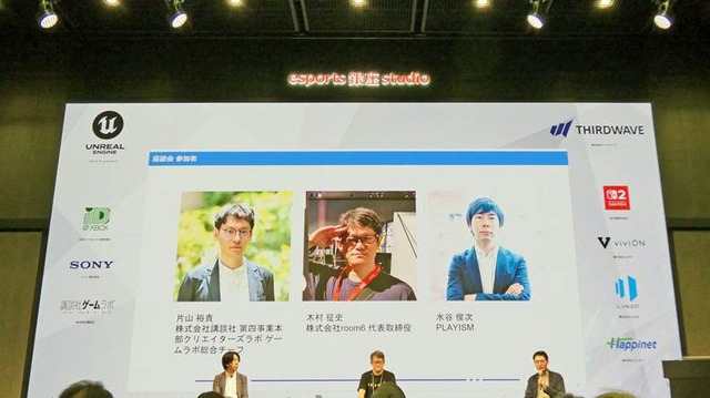 登壇者は、PLAYISM代表の水谷俊次氏、room6の代表取締役である木村征史氏、講談社・第四事業本部クリエイターズラボ「ゲームラボ」の総合チーフである片山裕貴氏の3名。