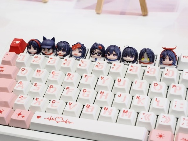 企業ブース、インディーゲームブースを問わず、グッズ販売なども盛んです。特に多く見かけたのはキャラクター物のキーキャップ。販売しているのかまでは分かりませんが、権利的に怪しそうなサンプルの展示も多く見られました。