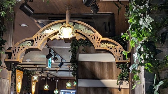 店内の内装は森の都“グリダニア”のマーケットをイメージしており、木目調のデザインや緑を取り入れているなど、ゲーム内に登場する商店街の雰囲気が再現されています。