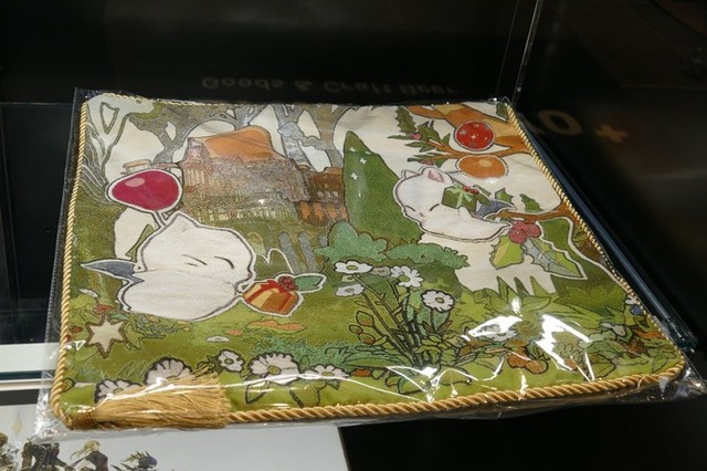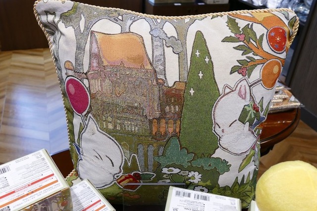 クッションカバーもマグカップ同様、星芒祭をイメージしたデザインとなっています。プレゼントボックスを持ったモーグリたちの姿が描かれており、とてもキュートな仕上がりです。
