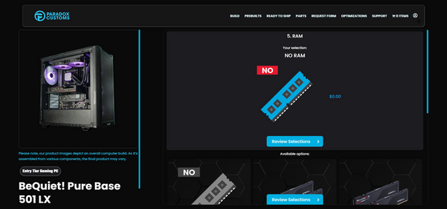 PCパーツ、特にメモリ(RAM)の価格高騰が続く中、海外のBTOショップ「Paradox Customs」が、メモリを搭載せずにPCを購入できるオプションの提供を開始しました。
