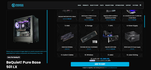 Paradox Customsのエントリーモデルの構成例でも、32GBのDDR5メモリ(325ドル)がPC全体の価格の約4分の1を占めるなど、通常よりもメモリの価格比率が高まっています。