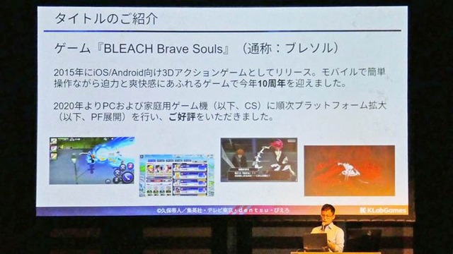 講演タイトルは「最少変更でPC/CS版リリース! モバイル専用タイトルだった『BLEACH Brave Souls』のマルチプラットフォーム事例」。