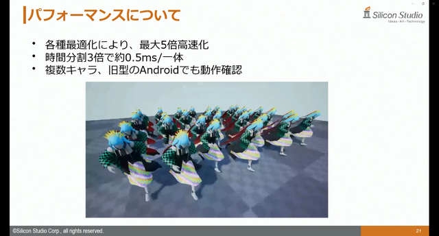 ここでスピーカーは曹氏に交代し、続いて自然な表現を支援する物理プラグイン「Silicon Studio Bone Dynamics」について、開発過程を振り返りながらその機能と特徴の解説が行われました。