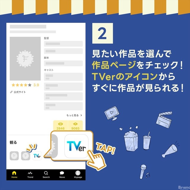 今回の連携で、Filmarks内の「ドラマ」「アニメ」カテゴリーにおいて、VOD(ビデオ・オン・デマンド)の選択肢として「TVer」が追加された。TVerで配信中の約800番組におよぶコンテンツがまずは対象となる。