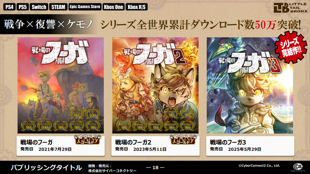 受託開発で強固な基盤を築く同社ですが、現在は自社パブリッシングタイトル『戦場のフーガ』シリーズにも注力しています。2025年5月29日には完結作『戦場のフーガ3』をリリースしており、シリーズの世界累計は53万本を突破しています。