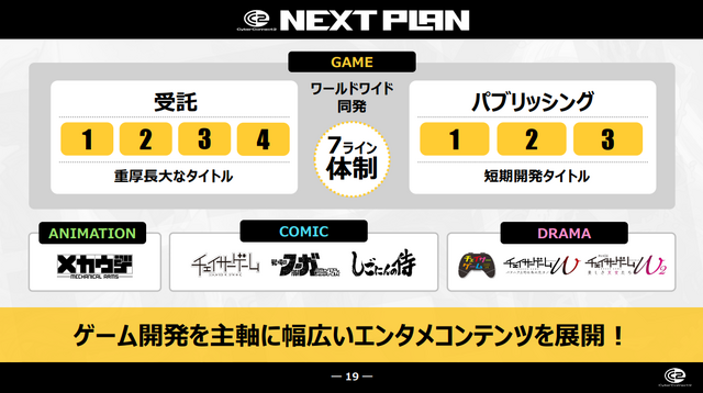 また、ゲーム単体に留まらず、漫画連載、電子書籍販売、リーディング公演といったメディアミックスを自社主導で展開。受託開発で得た利益を自社IPに投資し、誰にも左右されない収益の柱を構築する姿勢を示しました。