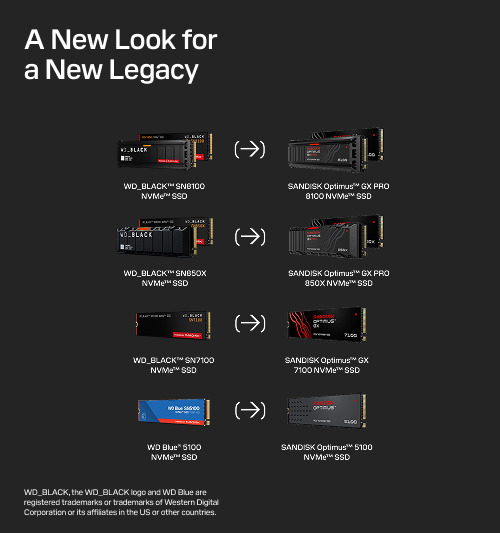 これまで「WD_BLACK」および「WD Blue」のブランド名で展開されていた製品が、「SANDISK Optimus」という新ブランド名に統合される形です。