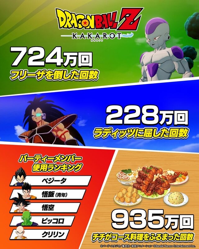 バンダイナムコエンターテインメントは、『ドラゴンボールZ KAKAROT』の世界累計販売本数が1,000万本を突破したと発表しました。
