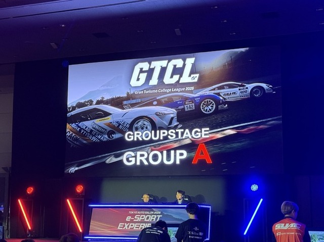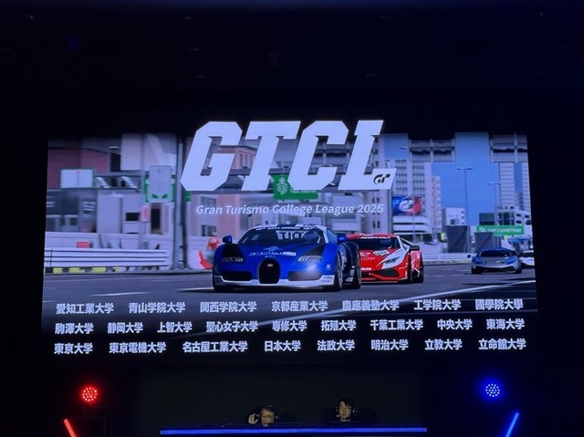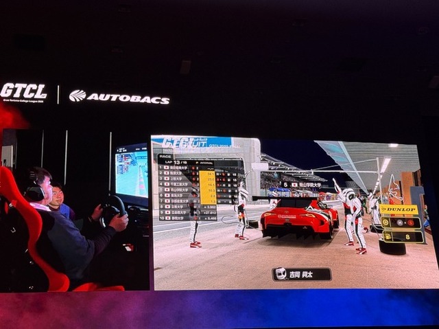 さて、メインステージでは色んなイベントが開催されていました。今回、筆者が取材に訪れたのは1/10の土曜で、その中でも「Gran Turismo College League 2025」を取材してきました。6年目を迎える本大会は、全国から集まった大学20校が3人の代表を選び、チームで走るというもの。各予選10チームずつに分かれ予選レースで上位5チームが決勝に進出し、そして決勝で雌雄を決するという流れになっていました。途中で走るドライバーが変わるので、エースドライバーをどのタイミングで走行させるのかがレースの鍵を握り、1人だけが突出した実力があっても勝つことが難しい非常に厳しいというのが特徴です。