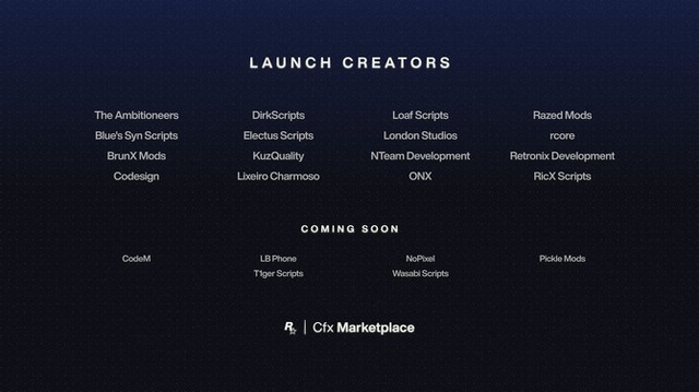 本マーケットプレイスではプロップやスクリプト、マップなど、すべてのサーバーとプレイヤーが購入可能な厳選されたコンテンツが揃っているとのこと。クリエイターとサーバーオーナー双方にとって最適な体験を提供するため、マーケットプレイスは段階的に展開予定で、興味を持つさらなるFiveM/RedMクリエイターを募集しています。
