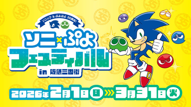 35周年を記念した「ソニック&ぷよぷよ」のラッキーくじの開催のほか、大阪梅田ではイベント「ソニ×ぷよフェスティバル in 阪急三番街」も実施。阪急三番街にスタンプラリーやフォトスポットが登場します。
