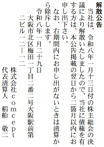 元カプコンの開発者・稲船敬二氏が設立したゲーム会社comceptの解散が、2026年1月29日付の官報に掲載された「解散公告」の記載により判明しました。