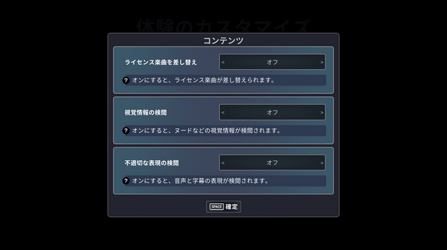本作のPC/海外PS5版では、汚い言葉を制限する「不適切な表現の検閲」、ヌードのような視覚表現を黒塗りにする「視覚情報の検閲」オプションが用意されています。スイッチ版ではこのオプションが削除されており、デフォルトで検閲モードが適用、なおかつ解除不可の仕様であることが判明していました。