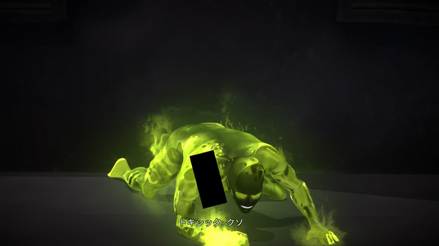 PS5国内版でゲームを進めてみると、トキシックというキャラクターの股間が黒塗りのボックスで覆われる状態に。スイッチ版と同じく、視覚情報の検閲オプションがデフォルトで適用され、それが解除できない仕様のようです。