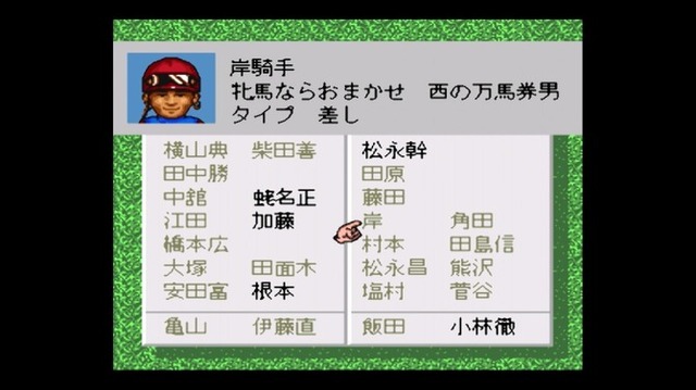 ※『ダビスタ』ではSFC三作目『ダービースタリオン96』から騎手と競走馬が実名になっています。