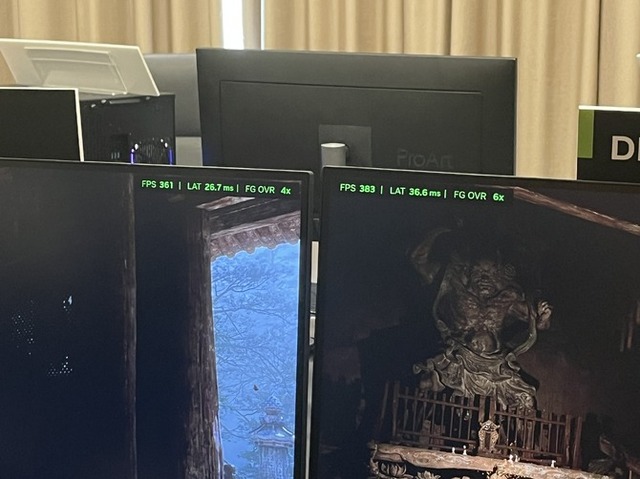 今回見せてもらったのは、中国発のヒット作アクションRPG『黒神話:悟空』でのデモンストレーションです。画像を拡大してみてもらうと、DLSS 4では少しずつしか現れていない火の粉が、しっかりとより幻想的に映し出されているのがわかると思います。