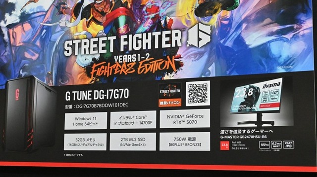 ブースではハイエンドゲーマー向けの「G TUNE」と、デザインやコストパフォーマンスを追求しカジュアル層にも向けた「NEXTGEAR」の2ブランドのPCを展示。