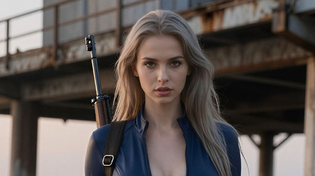 さらに、製品画像には『Fallout』シリーズの「Vaultスーツ」にも見える衣服を纏う女性が描かれており、これらはAIによって生成された画像である可能性がうかがえます。