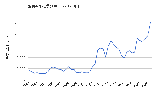 グラフ化するとその変化は一目瞭然で、2004年頃から急速に価格が上昇している様子がはっきりと確認できます。