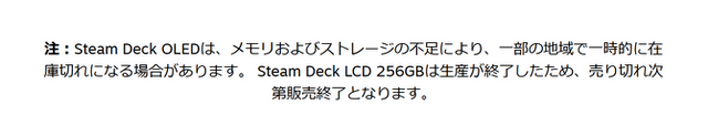 海外向けの「Steam Deck」OLEDモデル販売ページにて、「メモリおよびストレージの不足により、一部の地域で一時的に在庫切れになる場合がある」との注意書きが掲載されています。なお、ゲームジャーナリストのジェフ・キーリー氏によると、アメリカでは全モデルのSteam Deckが在庫切れの状態であるとのことです。