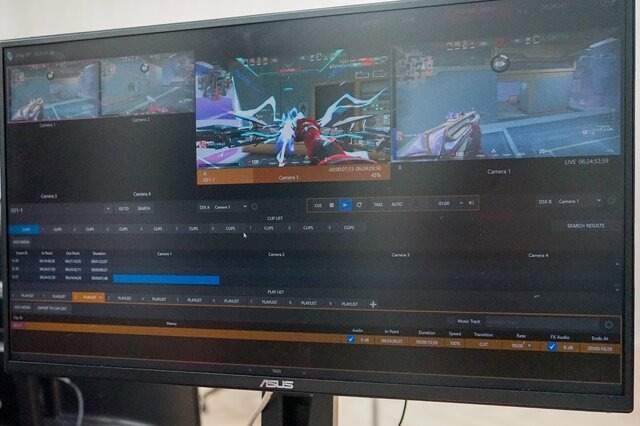 依田:基本的な手順としては、各選手の視点やカメラ映像など、複数の入力ソースをモニターで監視し、敵を倒したシーン(キルシーン)などの「良いプレイ」を探します。実際には、キルが発生した瞬間、そのシーンの開始点(イン点)と終了点(アウト点)を指定して映像を切り取ります。切り取った映像はプレイリストに登録します。