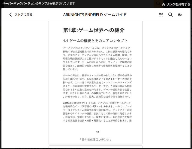 しかし、サンプルページを確認してみると、画像やイラストは一切なく白黒の文章が延々と続く、非常に読みづらいデザインとなっています。文章もAIに書かせたものを校正・添削せずそのまま載せたような内容で、長ったらしく要領を得ません。