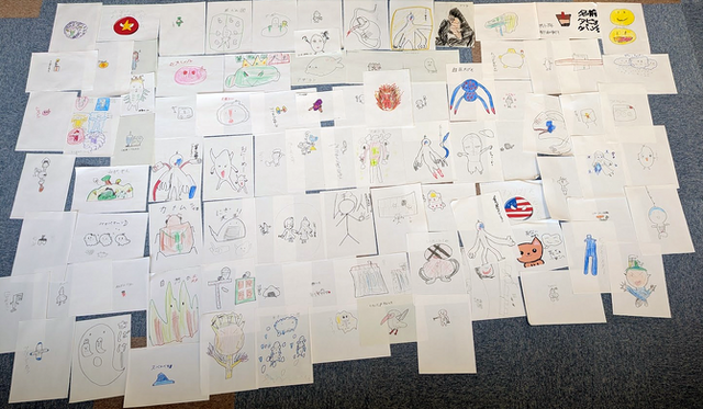 こえお氏:いただいた原画はすべてファイリングしています。子供たちの発想ってとてもユニークですよね。シリーズで描いてくれる子もいて、僕が子供の頃だったら絶対にこんなの描けなかったなとも思います。