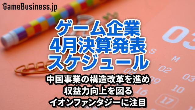 4月はゲームセンター運営のイオンファンタジーが本決算の発表を迎えるタイミングです。本稿では、注目の企業をピックアップするとともに、決算発表を予定する企業を一覧で紹介します。