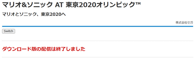 セガより販売されている『マリオ&ソニック AT 東京2020オリンピック』および『東京2020オリンピック The Official Video Game』が、ニンテンドーeショップをはじめとするデジタルストアにて、ダウンロード版の配信を終了しました。