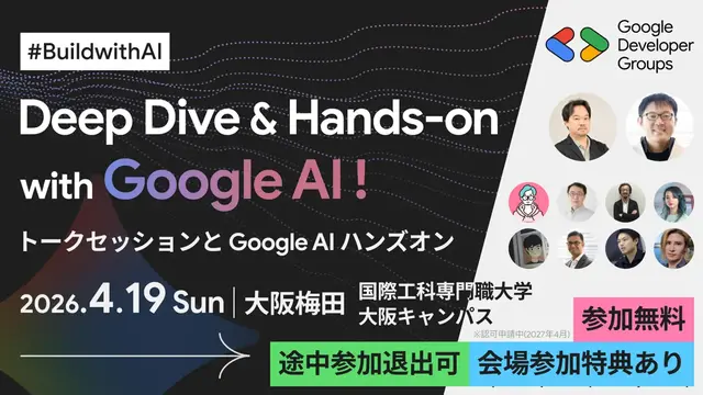 GDG Greater Kwansaiが主催する本イベントは、Geminiモデルをはじめとする最新AI技術の活用をテーマに、開発者が「知る」から「創る」へステップアップすることを目的としています。第一線のエンジニアによるトークセッションや、ハンズオン形式のワークショップが予定されています。