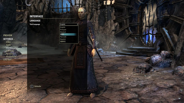 Steamで配信されている『ESO』はもともと英語・フランス語・ドイツ語・ロシア語・スペイン語・中国語(簡体字)の6か国語でのみサービスされているタイトルです。日本語は入っておらず、日本語でプレイしたい場合はDMM Games版で遊ぶ必要がありました。