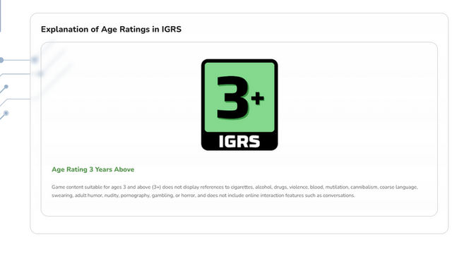先日からSteamストアページで掲載されていたインドネシア向けゲーム年齢評価「IGRS」について、執筆時点(2026/04/06 22:30)でページから掲載が取り下げられていることが判明しました。