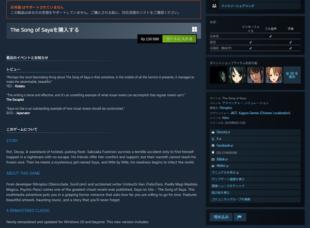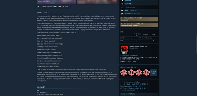 インドネシア規制当局に基づき、Steamでは同国向けのゲーム販売で年齢別レーティングの表示が義務化。その結果、様々なタイトルにIGRSの年齢評価が表示されていたものの、『ウマ娘 プリティダービー』が“18歳以上対象”である一方、元々は成人向けの『NUKITASHI(ぬきたし)』や『The Song of Saya(沙耶の唄)』は(いずれもオミットされた一部描写は公式パッチで対応)は“3歳以上対象”となっていました。