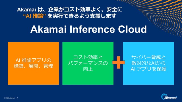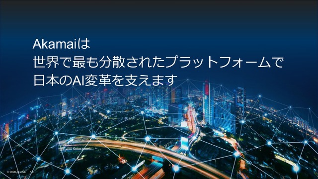 最新GPUを備えたAkamai Inference CloudによるAI推論と、企業が導入したAIやAPIを高度化し続ける脅威から守るセキュリティソリューション。これらをCDNで培った分散型ネットワークに乗せ、低遅延・低コストで世界中に届けるのがアカマイの目指す姿です。日隈氏は最後に「私たちが持つ超分散型プラットフォームの強みを生かして新たなAI時代を築き、日本におけるAIの変革を支えていきたい」と語りました。
